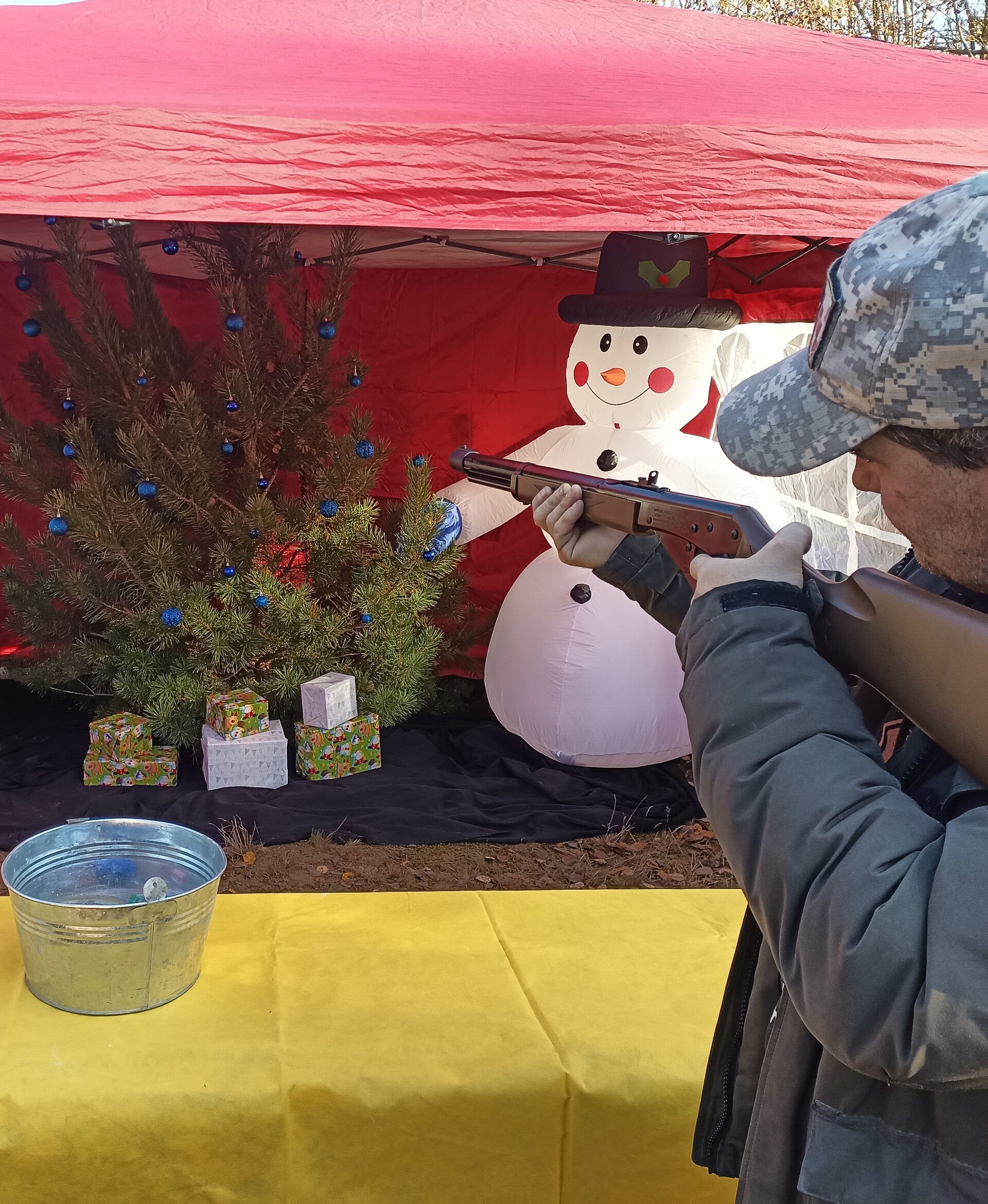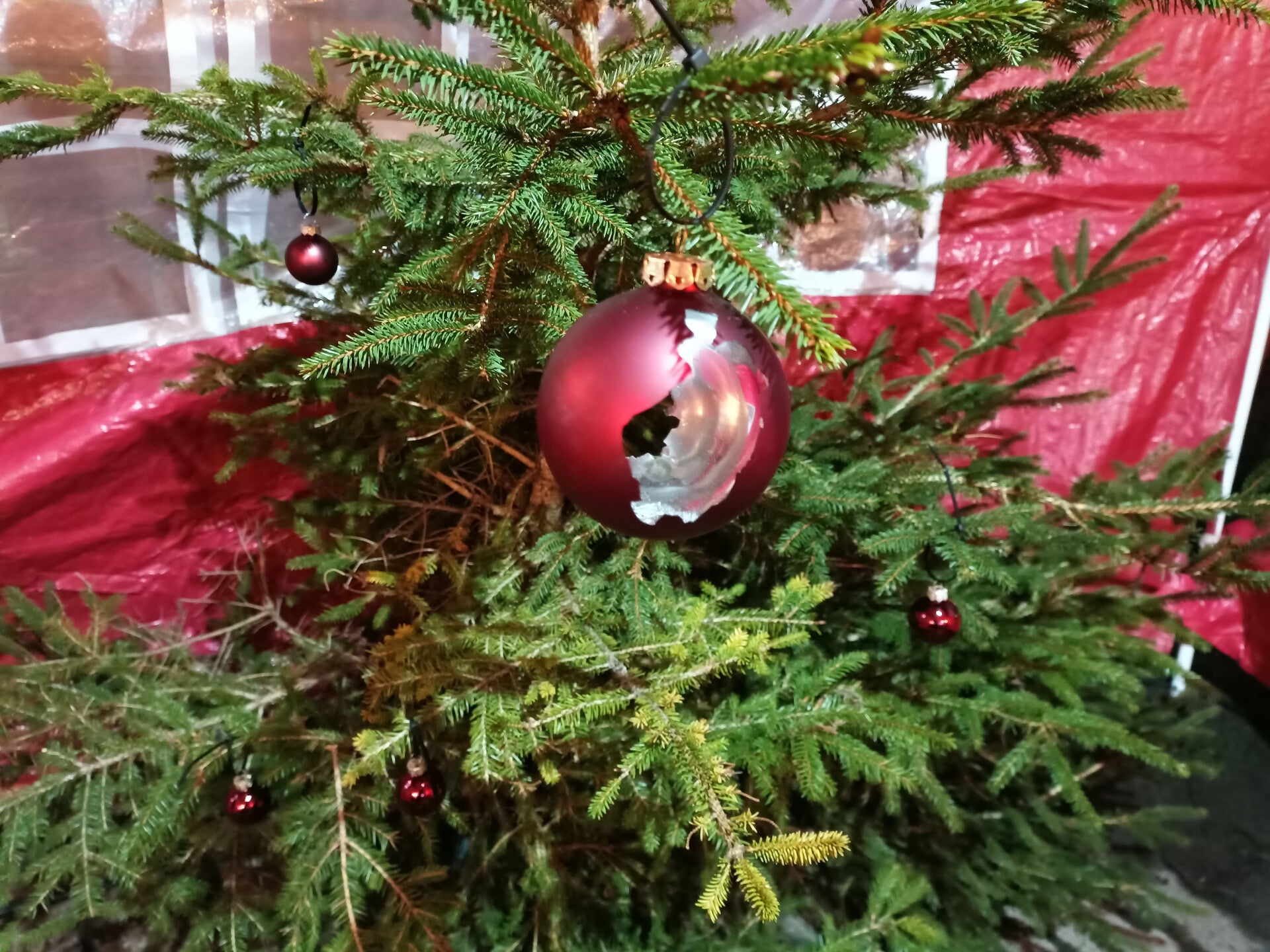 Das Christbaumkugel-Schießen funktioniert so wie bei einer Schießbude auf einem Jahrmarkt. Nur das man mit dem Luftgewehr nicht auf Plastik-Rosen und ähnliches Gedöns schießt, sondern auf Kugeln die an einem Weihnachtsbaum hängen.