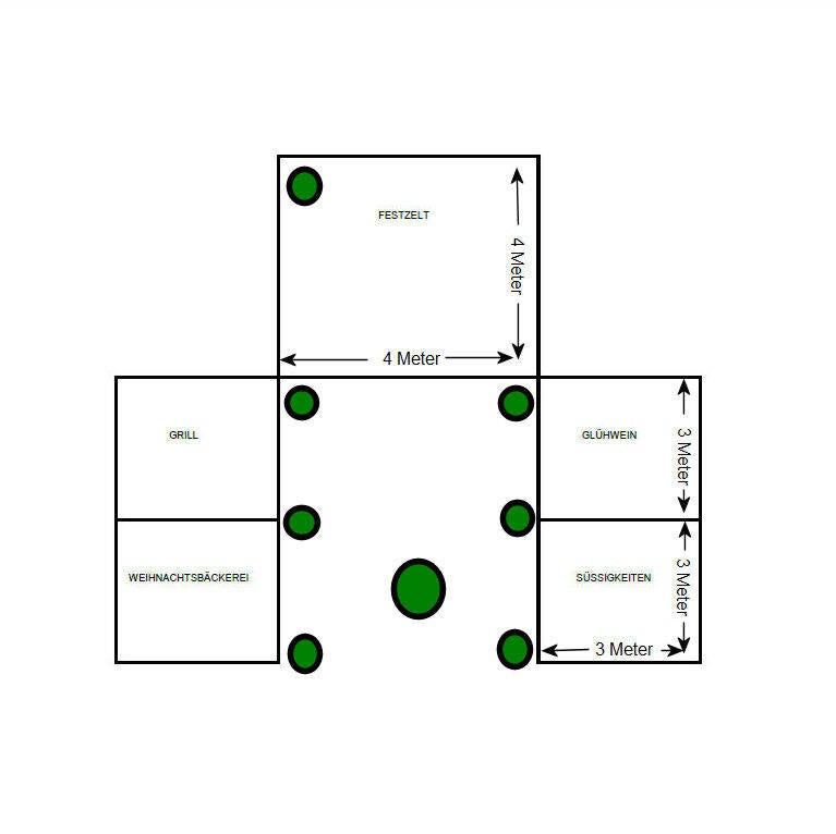 Aufbaubeispiel Weihnachtsmarkt bis 50 Gäste Aufbaubeispiel Weihnachtsmarkt ab 50 Gäste